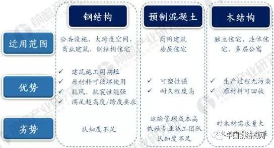 鋼結(jié)構(gòu)在裝配式建筑中優(yōu)勢明顯 按照裝配式建筑結(jié)構(gòu)體系劃分,可分為預(yù)制混凝土結(jié)構(gòu)、鋼結(jié)構(gòu)和木結(jié)構(gòu),與預(yù)制混凝土和木結(jié)構(gòu)相比,鋼結(jié)構(gòu)在諸多方面具備比較優(yōu)勢,未來有望成為裝配式建筑的主流結(jié)構(gòu)。